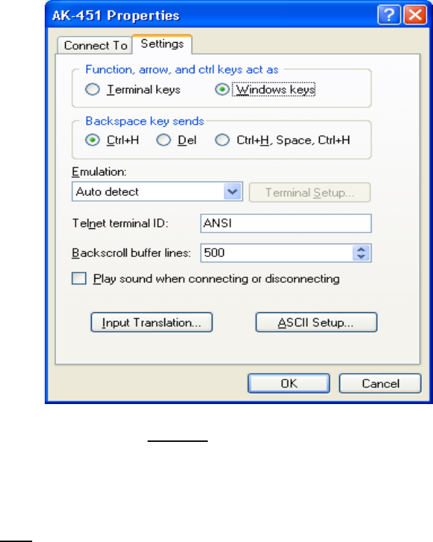 the equivalent RS-232 window), Click File -> Properties -> Settings tab. Click OK to