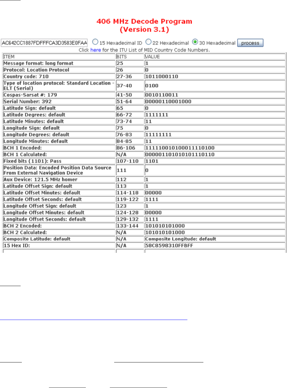 Input the 30-digit hex code into the 406 MHz Decode Program provided. See below: