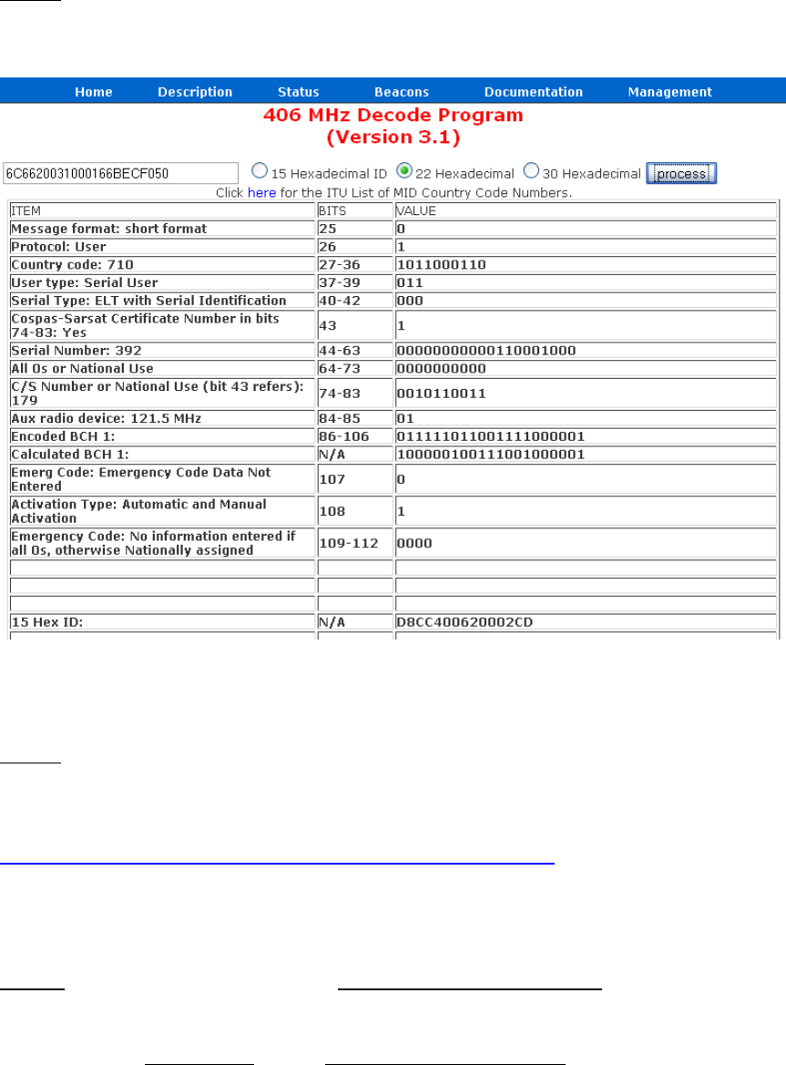 Input the 22-digit hex code into the 406 MHz Decode Program provided. See below: